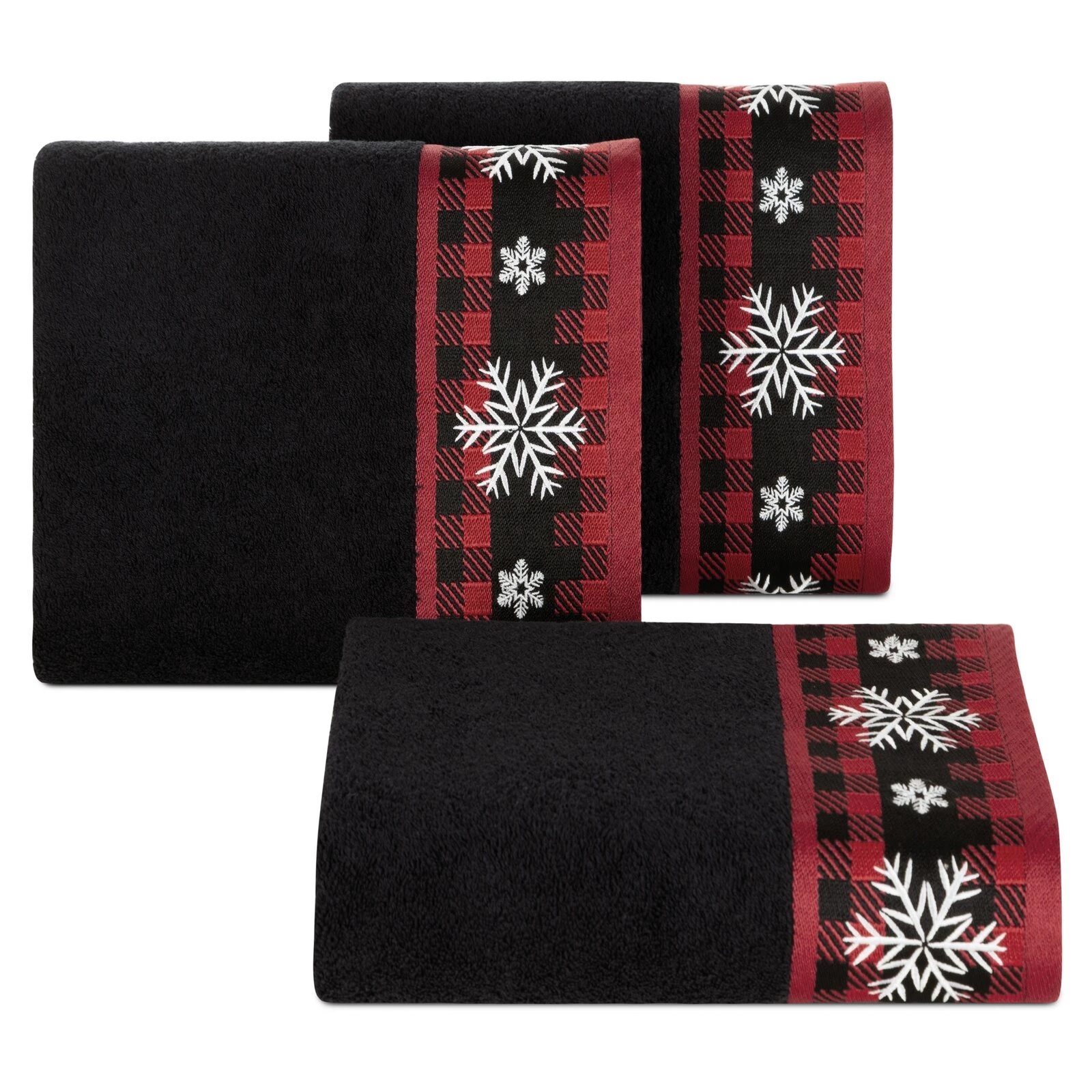 Ręcznik świąteczny z żakardową bordiurą zdobioną haftem szerokość: 70 cm, długość: 140 cm, kolor: czarny