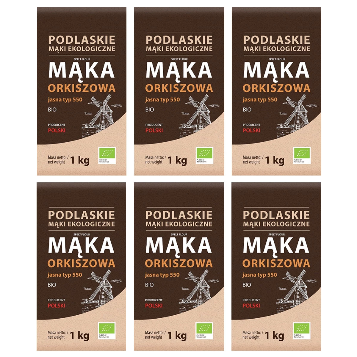 Zestaw 6x BioLife − Mąka orkiszowa jasna typ 550 BIO − 1 kg