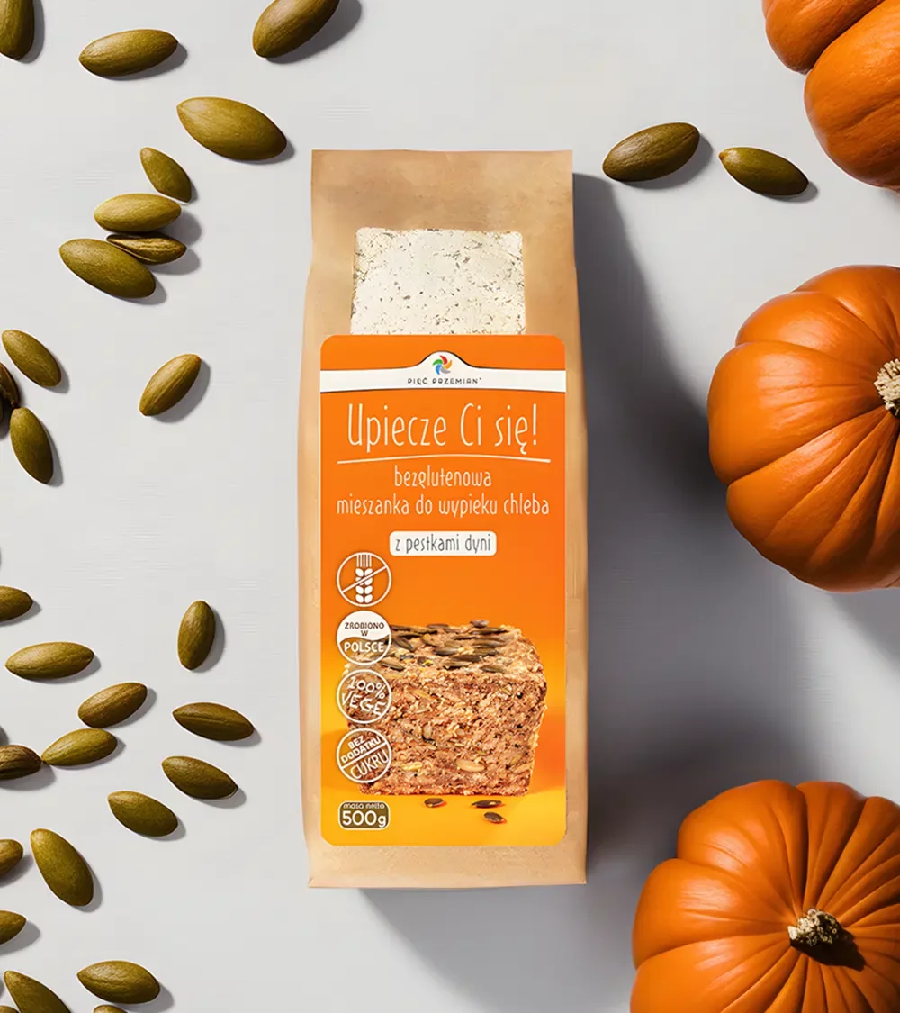 3 x Pięć Przemian - Bezglutenowa mieszanka do wypieku chleba z pestkami dyni - 500 gCena: 13,84 zł / szt.