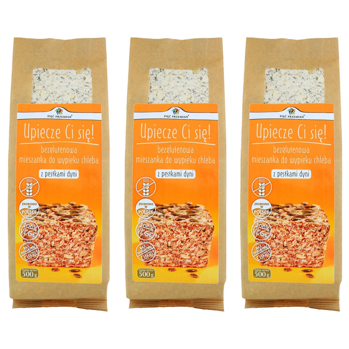 Zestaw 3x Pięć Przemian - Bezglutenowa mieszanka do wypieku chleba z pestkami dyni - 500 g
