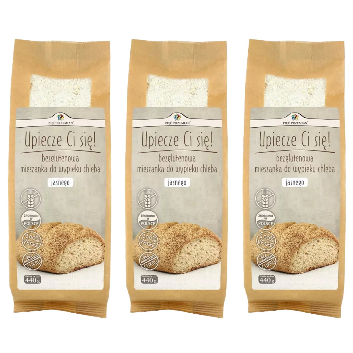 Zestaw 3x Pięć Przemian - Bezglutenowa mieszanka do wypieku chleba jasnego 440 g