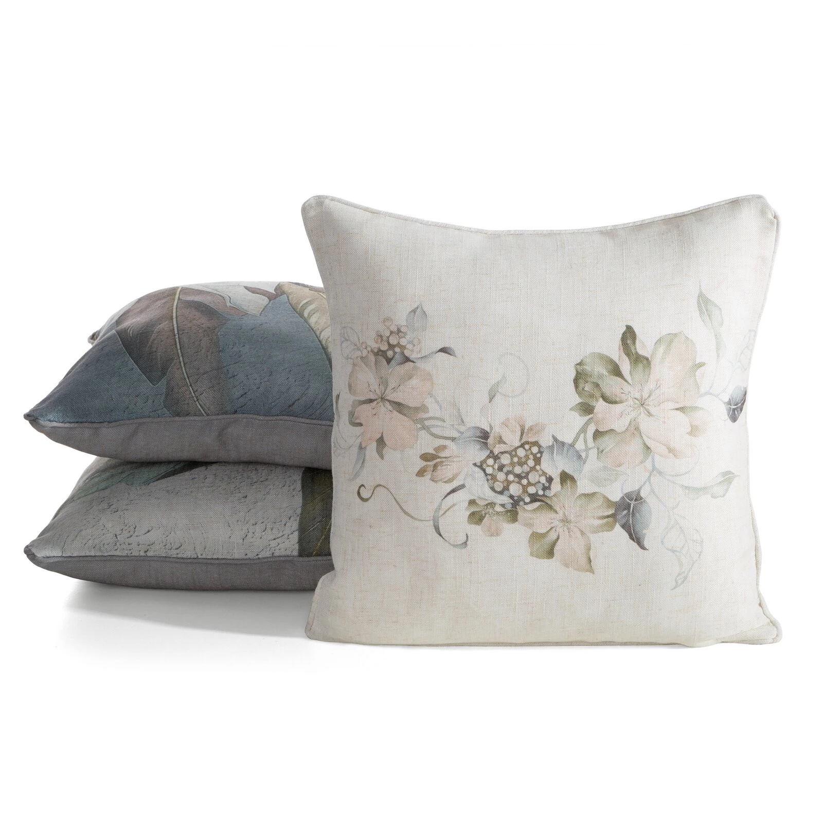 Poszewka wykonana z tkaniny imitującej len, obszyta ozdobną lamówką szerokość: 45 cm, długość: 45 cm