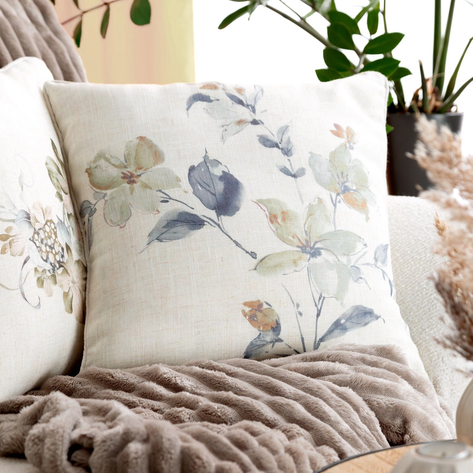 Poszewka wykonana z tkaniny imitującej len, obszyta ozdobną lamówką szerokość: 45 cm, długość: 45 cm