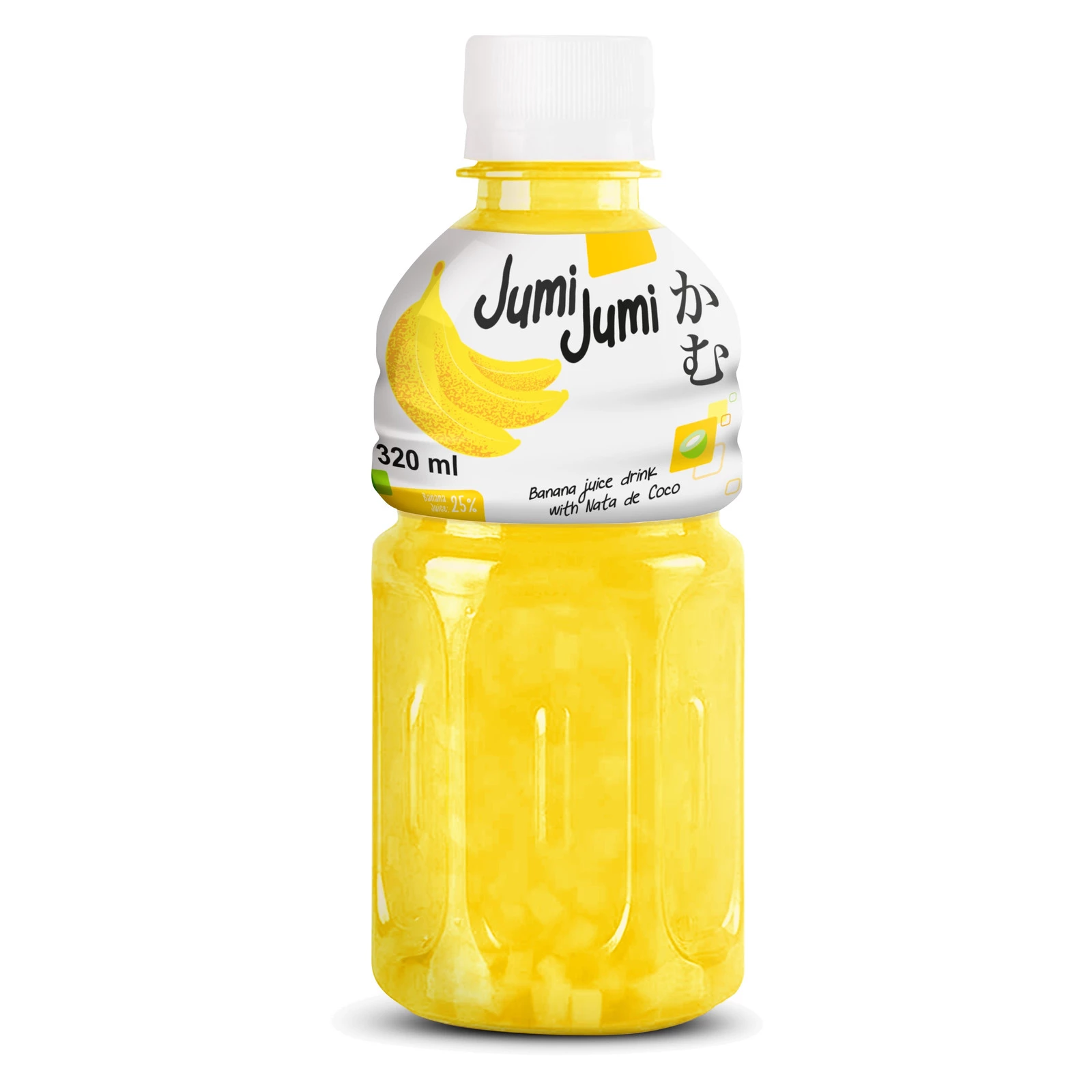 - Jumi Jumi Banan to orzeźwiający napój, który łączy w sobie intensywny smak bananów z przyjemnie żującą galaretką kokosową nata de coco. To idealna propozycja na egzotyczną przerwę w ciągu dnia, stworzona z myślą o miłośnikach niebanalnych smaków.