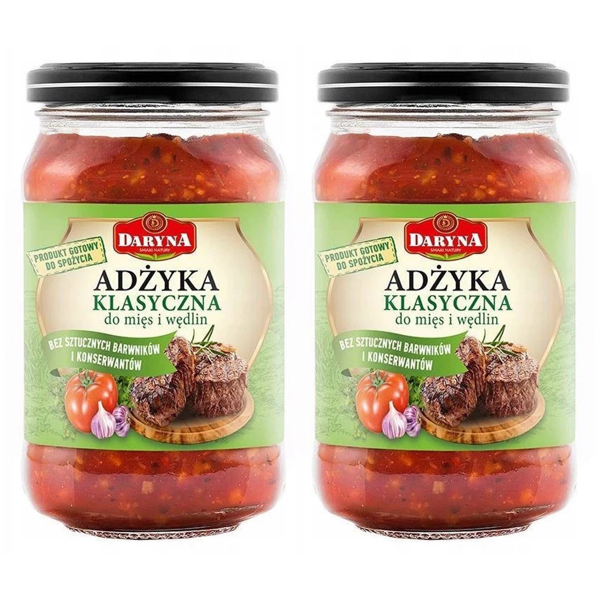 - Adżyka Klasyczna marki Daryna to pyszny, naturalny sos przygotowany na bazie aromatycznej pasty pomidorowej, suszonych warzyw oraz ziół i przypraw. Sos jest w 100% naturalny, bez sztucznych konserwantów i barwników.