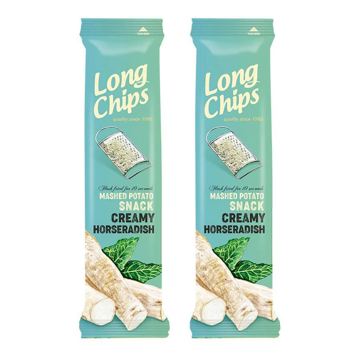 - Long Chips Creamy Horseradish to wyjątkowe przekąski ziemniaczane. Smażone w wysokiej jakości oleju rzepakowym tylko przez 10 sekund, przez co są niesamowicie chrupkie i nie są tak tłuste jak klasyczne chipsy.