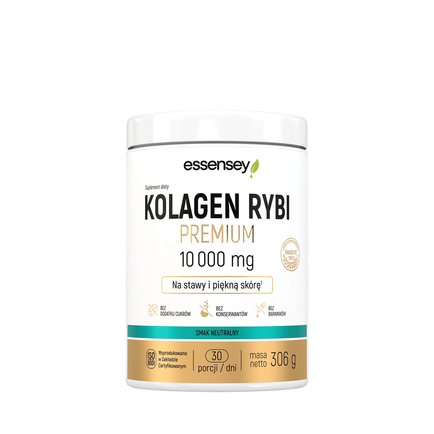 - Essensey Kolagen Rybi Premium to doskonały suplement diety dla osób, które chcą zadbać o zdrowie swoich stawów, kości i skóry. Dzięki wysokiej dawce kolagenu rybiego, witaminie C, kwasowi hialuronowemu i witaminie D3, wspiera regenerację organizmu.