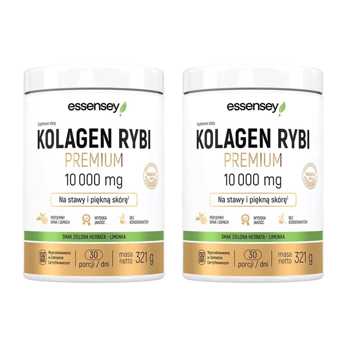 Zestaw 2x Essensey Kollagen Rybi 10000 mg na stawy, włosy z kwasem hialuronowym 321g smak zielona herbata