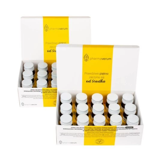 Produkt Zestaw 2x Pharmaverum Beautyllagen® shot Kolagen i Witaminy dla Zdrowej Skóry i Stawów 30 szt x 30 ml PHARMAVERUM to suplement diety. Nie może być stosowany jako substytut zróżnicowanej diety. Pamiętaj o zrównoważonym sposobie żywienia i zdrowym trybie życia.- Przechowuj w chłodnym miejscu, z dala od bezpośredniego światła słonecznego.