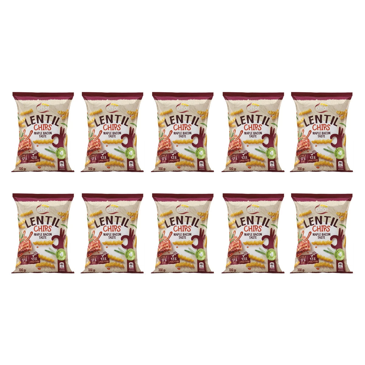 Zestaw 10x Chipsy z czerwonej soczewicy o smaku bekonu 100 g