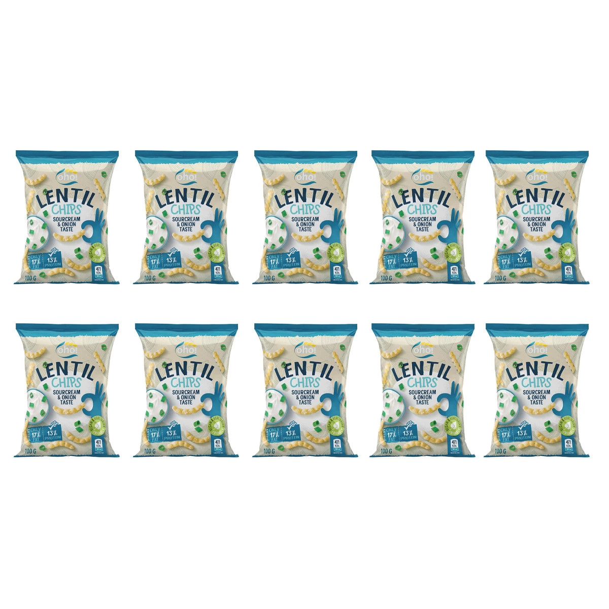 Zestaw 10x Chipsy z czerwonej soczewicy o smaku śmietany i cebuli 100 g