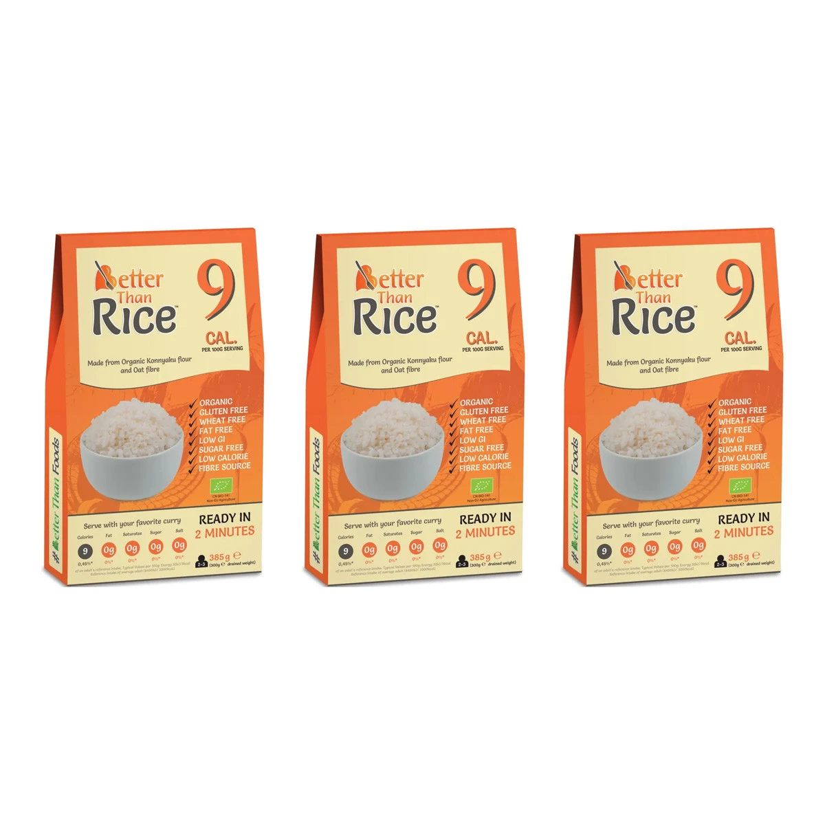 Zestaw 3x MAKARON (KONJAC TYPU NOODLE W KSZTAŁCIE RYŻU) BEZGLUTENOWY BIO 385 g - BETTER THAN FOODS