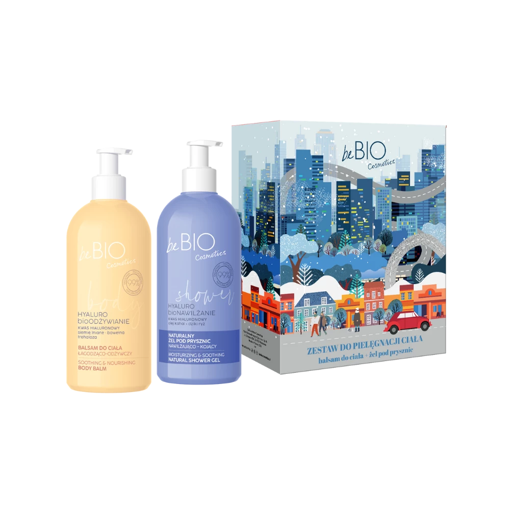 BeBio Zestaw do pielęgnacji ciała Hyaluro Żel pod prysznic bioNawilżenie 350ml + balsam bioOdżywianie 350ml