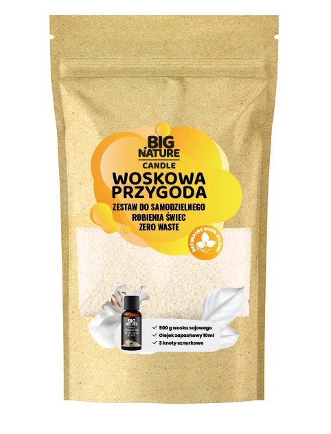 - ✅ 500 g naturalnego wosku sojowego – idealnego do samodzielnego tworzenia świec.