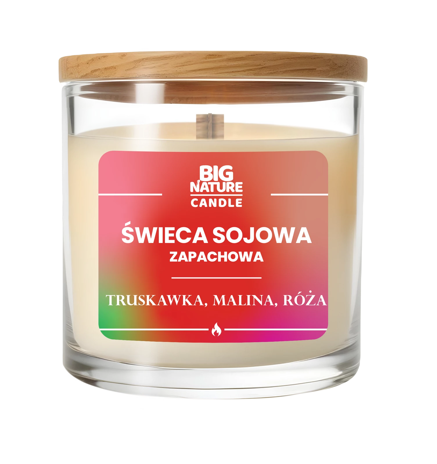Big Nature Świeca sojowa o zap. Truskawka, Malina i Róża 225g