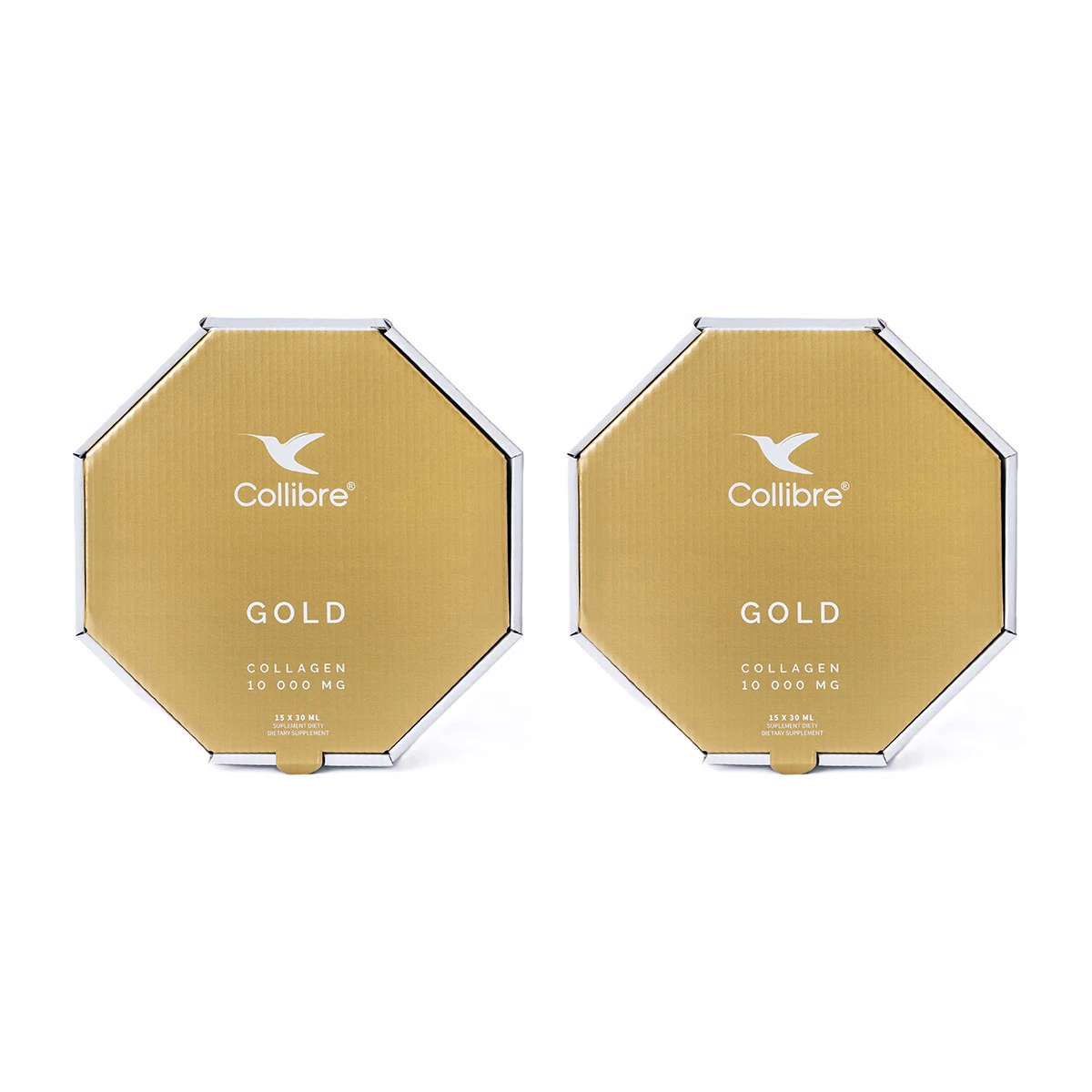 - Collibre® Gold to suplement diety w formie wygodnego shotu z hydrolizowanym kolagenem wołowym i kompleksem 12 witamin. Stworzony z myślą o osobach w każdym wieku, które chcą zadbać o sprawność fizyczną, skórę, włosy, paznokcie.