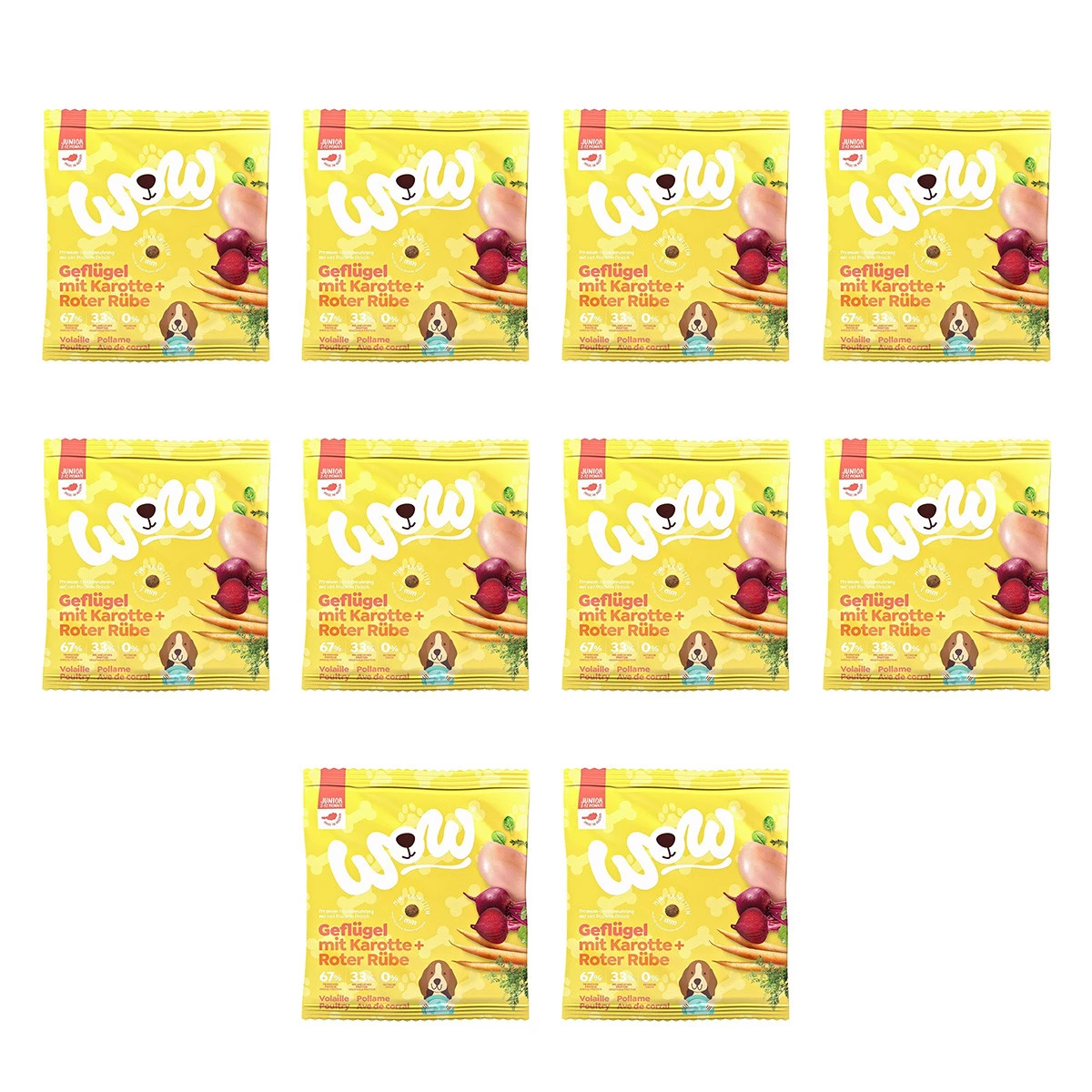 Zestaw 10x WOW Junior Geflügel - drób i łosoś z marchewką i buraczkami dla szczeniąt 80g