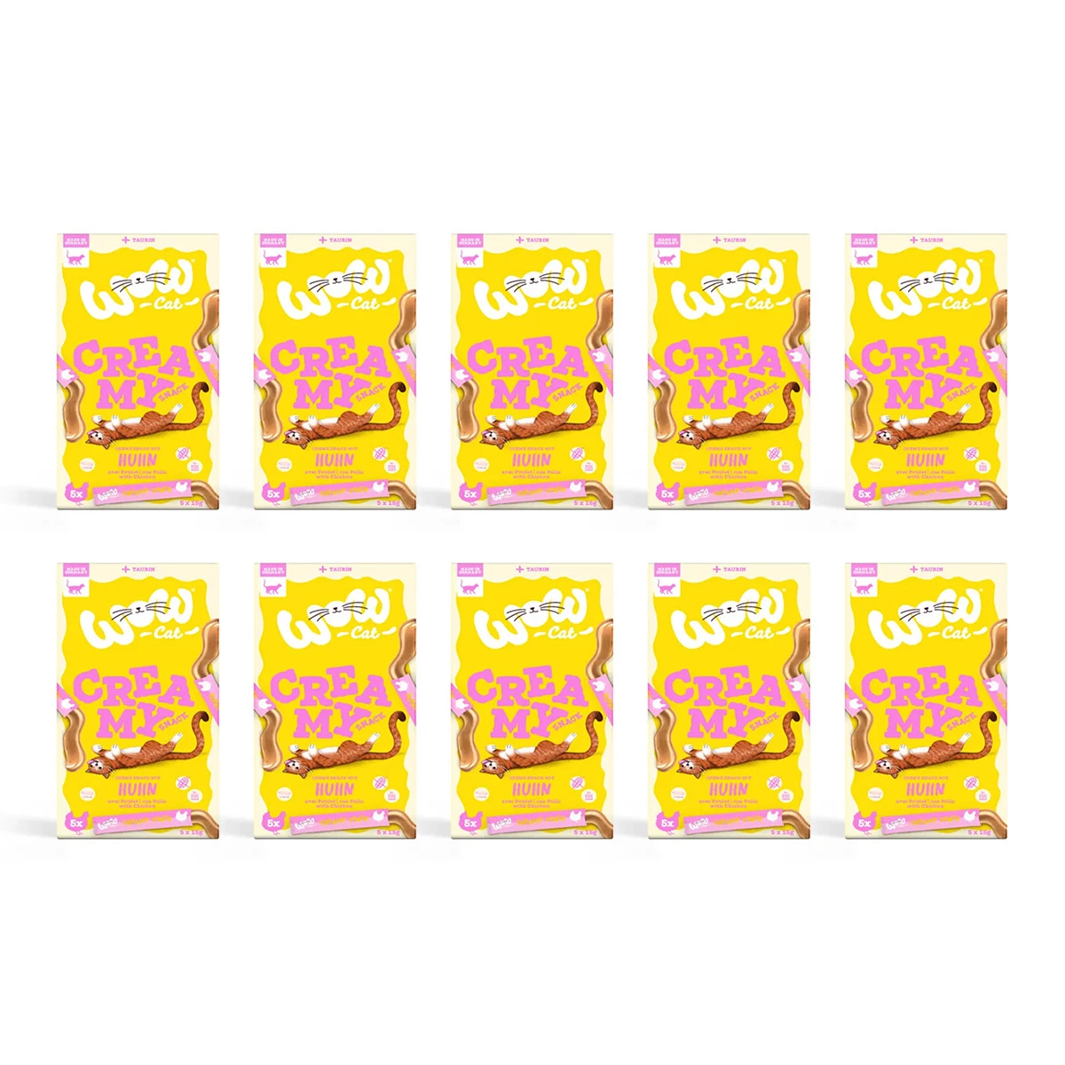 Zestaw 10x WOW CAT Creamy Snack Huhn - kremowa przekąska z kurczakiem (5x15g)