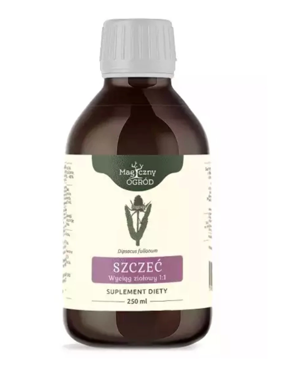 Szczeć to roślina z rodziny przewiertniowatych, naturalnie występująca m.in. w Europie, Azji, Afryce i Ameryce Południowej. Charakteryzuje się ona wysokimi, mocnymi łodygami oraz dużymi, kolczastymi koszyczkami kwiatowymi, które są jej najbardziej rozpoznawalnym elementem. Surowcem wykorzystywanym w suplementach diety jest jej korzeń.