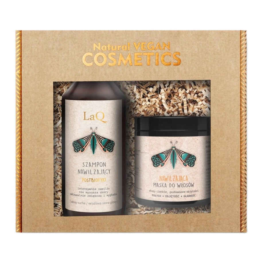 <p>Zestaw nawilżający do włosów cienkich i puszących się stworzony z myślą nie tylko o pielęgnacji delikatnych, przesuszonych włosów, ale także o wrażliwej skórze głowy. W skład zestawu wchodzą: nawilżający szampon z postbiotykami oraz ekspresowa maska odżywczo-nawilżająca typu EH (emolientowo-humektantowa). Całość zamknięta w wygodnych, estetycznych opakowaniach, gotowa na podbój każdej łazienki. Składa się z naturalnych i wegańskich produktów, opracowanych z myślą o świadomej pielęgnacji. </p><p>Zestaw skutecznie, ale łagodnie oczyszcza włosy i skórę głowy, nie powodując przesuszenia. Nawilża, wygładza, regeneruje i przeciwdziała puszeniu oraz elektryzowaniu się pasm. Przy regularnym stosowaniu włosy stają się miękkie, lepiej się układają i łatwiej rozczesują. Idealny duet dla tych, którzy kochają włosy lekkie, zdrowe i błyszczące. </p><p><b>W zestawie:<br></b>• <b>Szampon nawilżający z postbiotykami </b>– bazuje na wyjątkowo delikatnych substancjach myjących pochodzenia roślinnego. Zawiera ekstrakt z niezapominajki o silnym działaniu nawilżającym, kojący D-pantenol oraz cenne postbiotyki, które wspierają naturalną równowagę mikrobiomu skóry głowy. Jego neutralne pH sprawia, że sprawdzi się także u osób z nadwrażliwością. </p><p>• <b>Ekspresowa maska nawilżająco-odżywcza 8 w 1 </b>– to idealne połączenie humektantów i emolientów. Nawilżające składniki, takie jak kwas hialuronowy, D-pantenol i ekstrakt z niezapominajki, wiążą wodę i zapobiegają jej utracie. Z kolei odżywcze emolienty – oleje z pestek śliwki, winogron, słodkich migdałów oraz masło shea – nadają włosom miękkość, elastyczność i zdrowy blask. </p><p><b>Nuty zapachowe:</b><br>głowy: woda różana, zielone liście, wiciokrzew<br>serca: lotos, goździk, osmantus, liście figowe, woda różana<br>podstawy: piżmo, nuty drzewne<br></p>