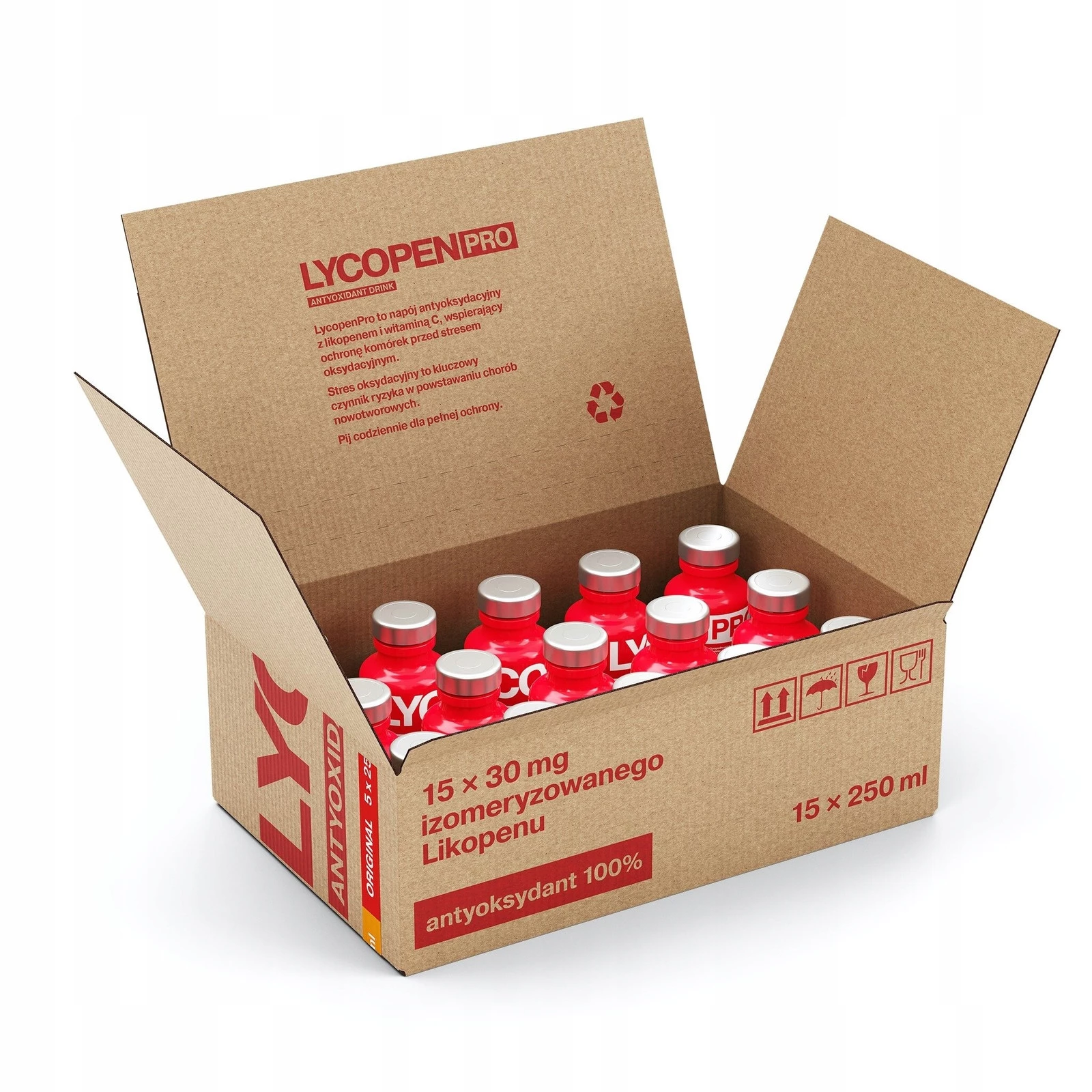 Produkt Zestaw 15 x Napój LycopenPro Antioxidant Drink Original 250ml LYKOPHARM to suplement diety. Nie może być stosowany jako substytut zróżnicowanej diety. Pamiętaj o zrównoważonym sposobie żywienia i zdrowym trybie życia.- Przechowuj w chłodnym miejscu, z dala od bezpośredniego światła słonecznego.