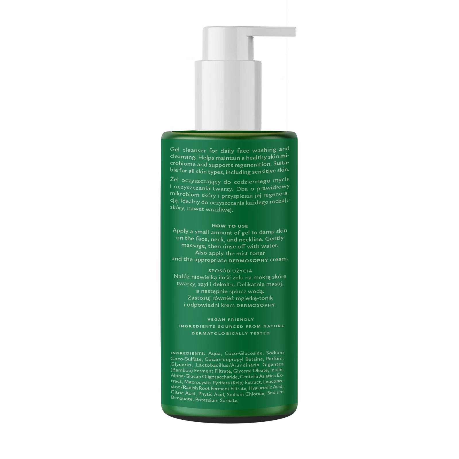 Skuteczność jak dermo. Komfort jak natura. Żel do oczyszczania twarzy Dermosophy łagodnie myje i przywraca prawidłowe pH skóry. Połącznie Prebiotic Skin System oraz bioferementu z bambusa wspiera mikrobiom i nawilża skórę na etapie mycia. Nie pozostawia efektu ściągniętej skóry. INCI: Aqua, Coco-Glucoside, Sodium Coco-Sulfate, Cocamidopropyl Betaine, Parfum, Glycerin, Lactobacillus/Arundinaria Gigantea (Bamboo) Ferment Filtrate, Glyceryl Oleate, Inulin, Alpha-Glucan Oligosaccharide, Centella Asiatica Extract, Macrocystis Pyrifera (Kelp) Extract, Leuconostoc/Radish Root Ferment Filtrate, Hyaluronic Acid, Citric Acid, Phytic Acid, Sodium Chloride, Sodium Benzoate, Potassium Sorbate.