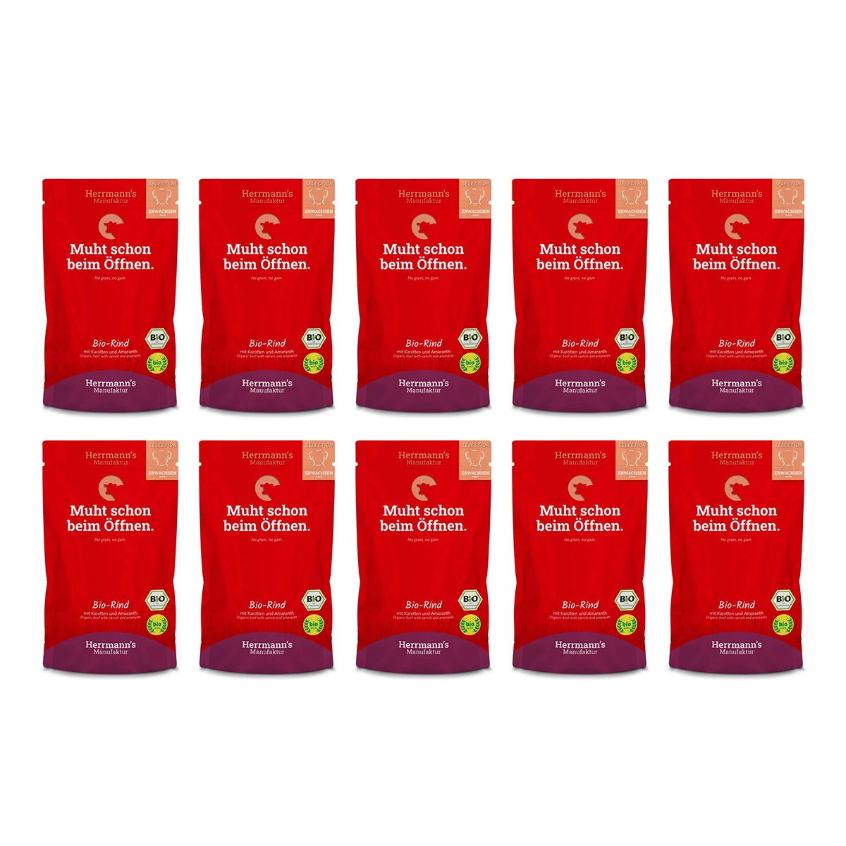 Zestaw 10x HERRMANN'S MANUFAKTUR Selection Dog Bio Rind - bio wołowina z marchwią (150g)