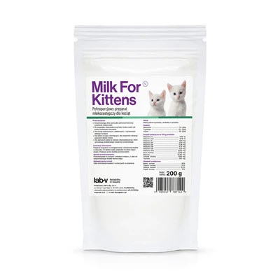 - Lab-v Milk for Kittens to specjalistyczny preparat mlekozastępczy opracowany we współpracy z lekarzami weterynarii. Zapewnia młodym kociętom od pierwszego dnia życia wszystkie niezbędne składniki odżywcze wspierające zdrowy rozwój, odporność i energię.
