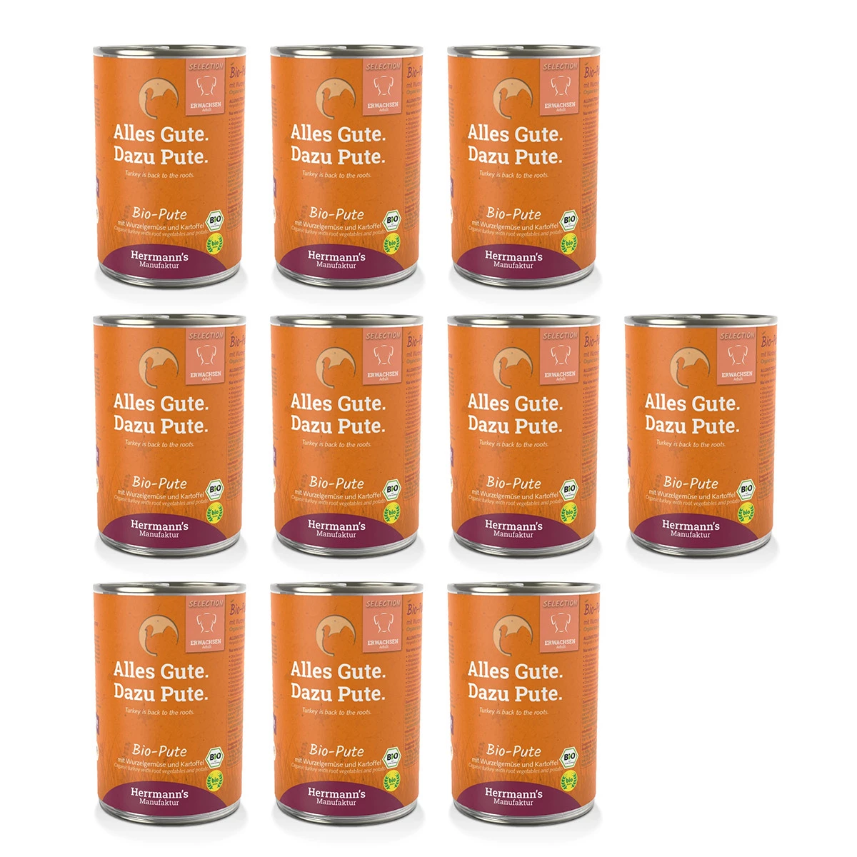 Zestaw 10x HERRMANN'S MANUFAKTUR Selection Dog Bio Pute - bio indyk z warzywami (400g)