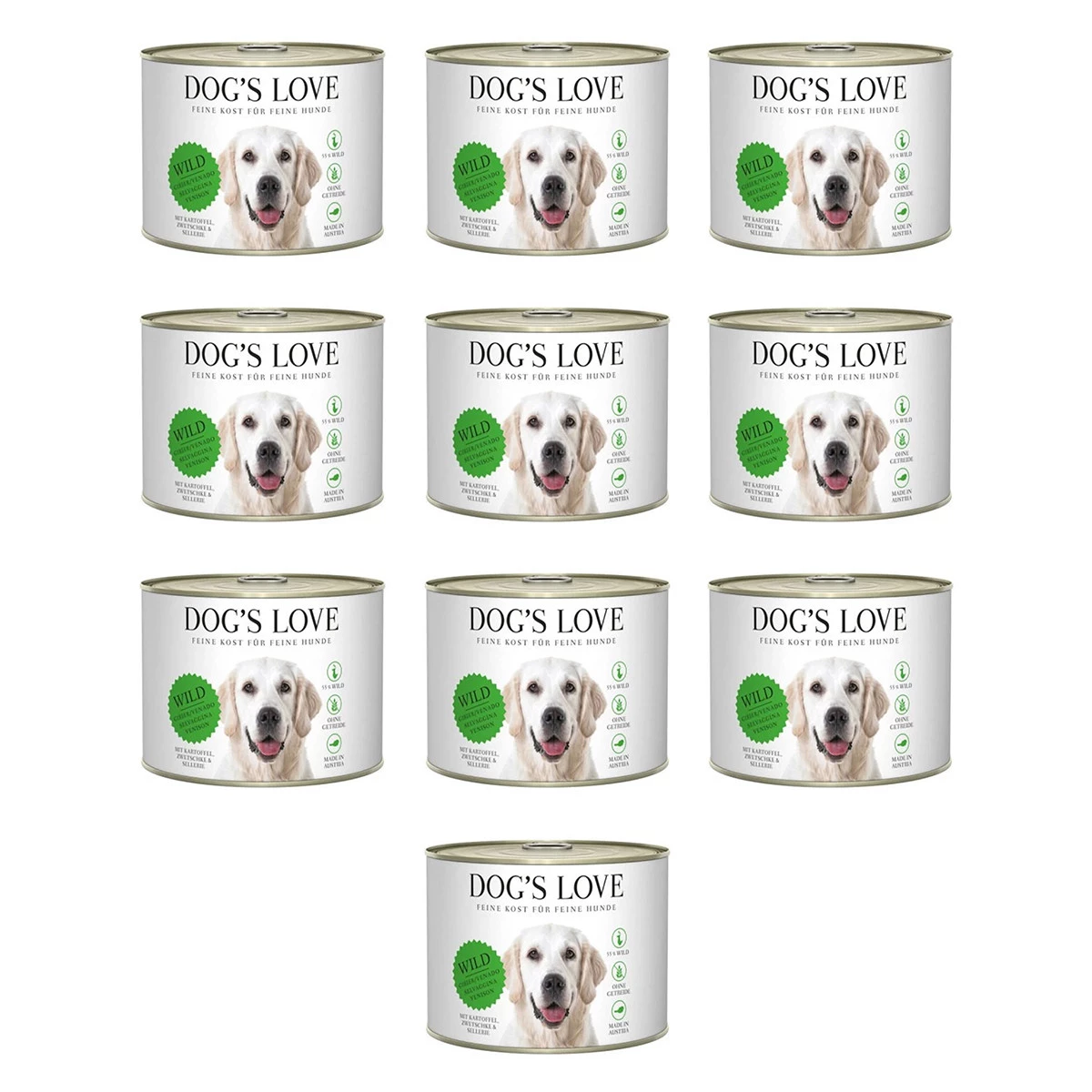 Zestaw 10x DOG'S LOVE WILD dziczyzna z marchewką, selerem, ziemniakami i śliwkami (200g)