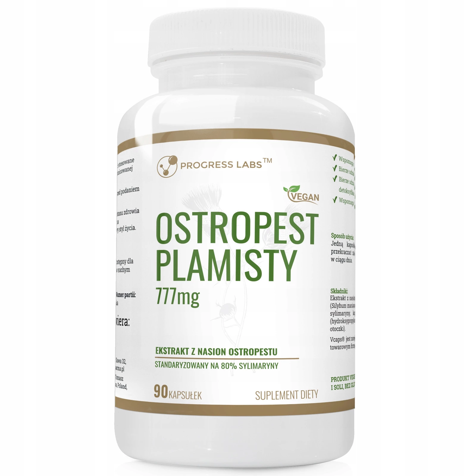 Produkt Progress Labs Ostropest Plamisty Exstrakt 80% Sylimaryny 777 Mg 90 kaps. Progress Labs to suplement diety. Nie może być stosowany jako substytut zróżnicowanej diety. Pamiętaj o zrównoważonym sposobie żywienia i zdrowym trybie życia.- Przechowuj w chłodnym miejscu, z dala od bezpośredniego światła słonecznego.