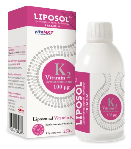 - Liposomalna naturalna witamina K (VitaMK7®) z fermentacji Bacillus Subtillis Natto zamknięta w liposomach LiposolTM Premium Absorption Technology. Wygodne opakowanie 250 ml (50 porcji po 5 ml).