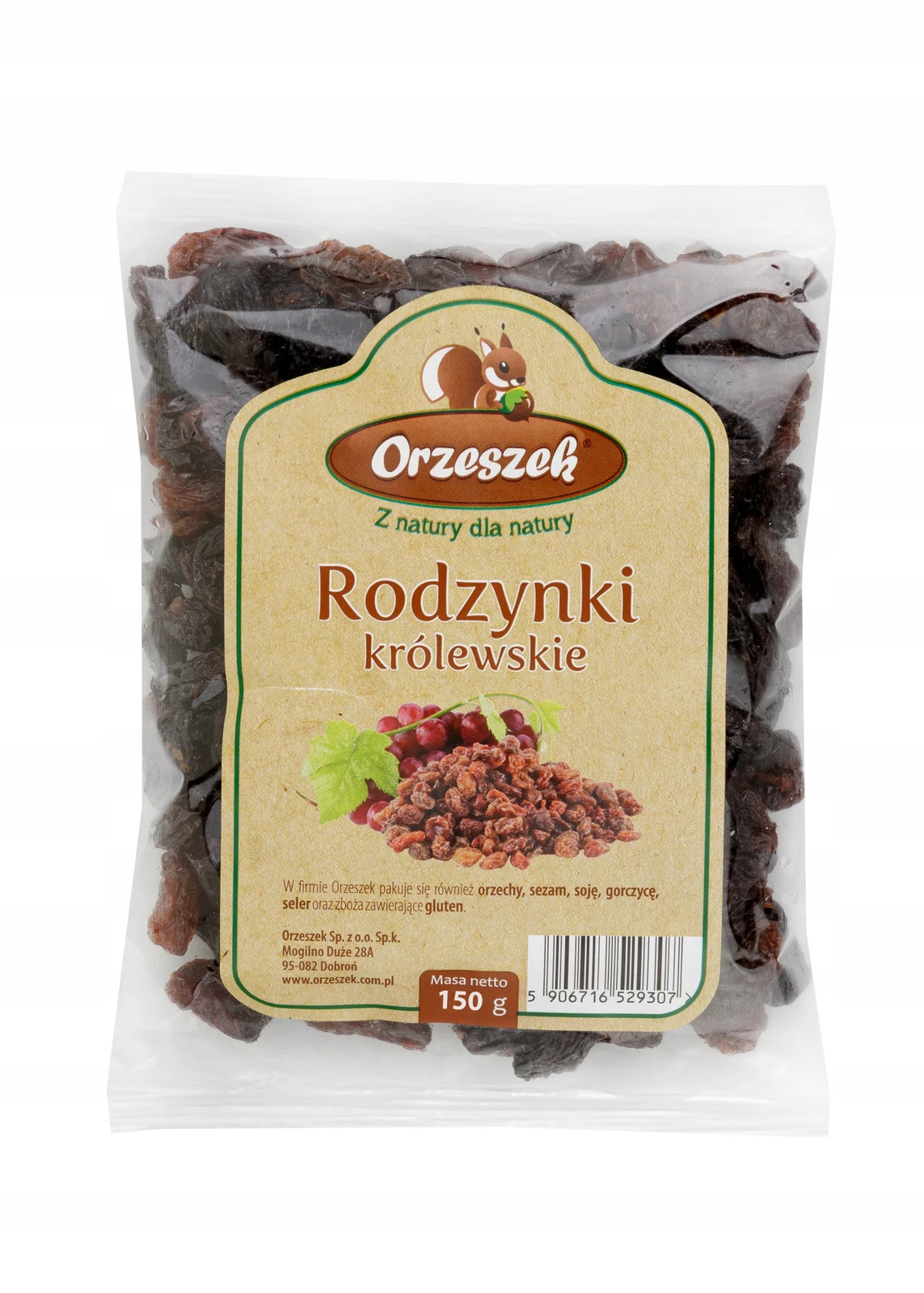 Rodzynki królewskie to wyjątkowa odmiana suszonych winogron, wyróżniająca się dużym rozmiarem oraz naturalną słodyczą. Mogą być spożywane jako zdrowa przekąska lub wykorzystywane do wypieków i potraw. Ich intensywny smak i aromat to gwarancja prawdziwej satysfakcji.