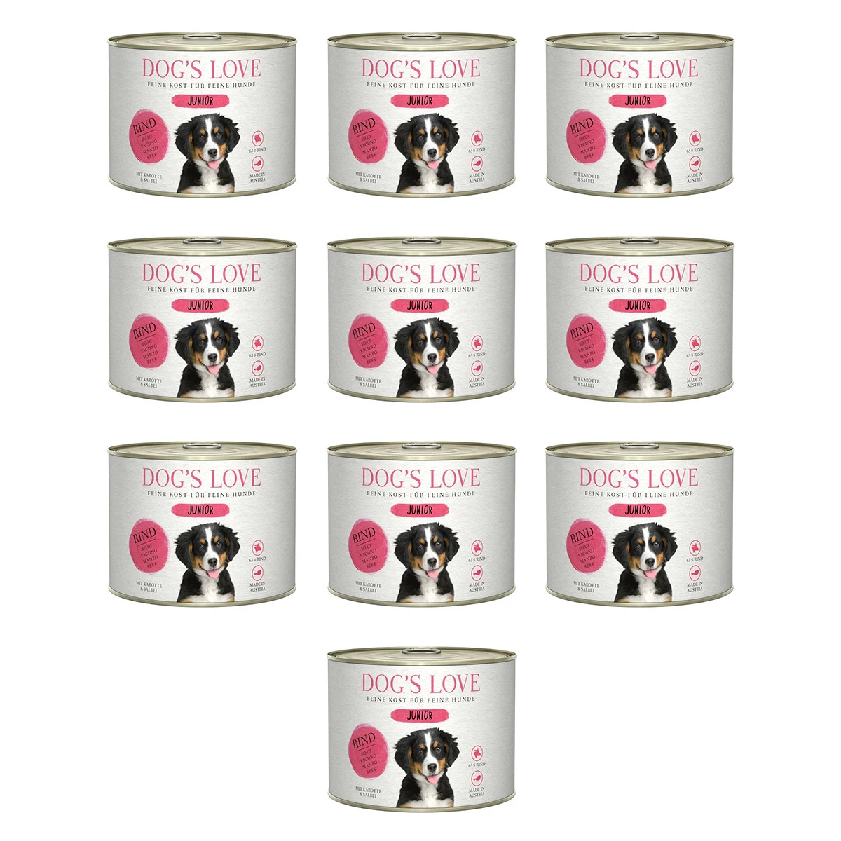 Zestaw 10x DOG'S LOVE Junior Rind - wołowina z marchewką i szałwią dla szczeniąt (200g)