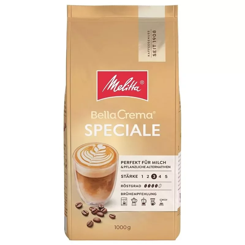 - Melitta BellaCrema Speciale to starannie skomponowana mieszanka ziaren Arabiki i Robusty, wyróżniająca się delikatnym, stonowanym smakiem o niskiej kwaskowatości.