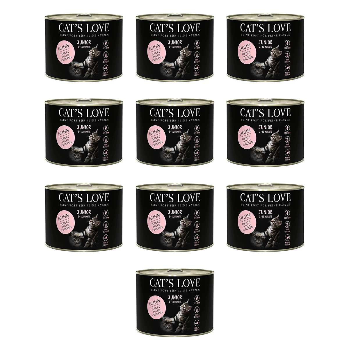 Zestaw 10x CAT'S LOVE Junior Huhn - kurczak z algami i olejem z krokosza (200g)