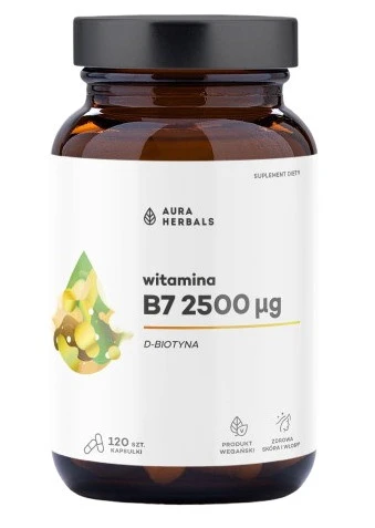 - Supleme Produkt Aura Herbals Witamina B7 2500 µg, biotyna, 120 kaps. Aura Herbals to suplement diety. Nie może być stosowany jako substytut zróżnicowanej diety. Pamiętaj o zrównoważonym sposobie żywienia i zdrowym trybie życia.