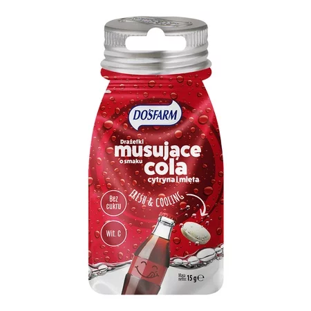 Dosfarm Drażetki musujące o smaku coli, cytryny i mięty z witaminą C 15g