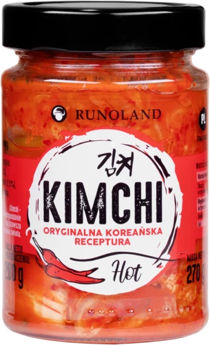 - Tradycyjne koreańskie kimchi z kapusty pekińskiej i aromatycznych przypraw. Pikantny smak z dodatkiem papryki gochugaru, czosnku i imbiru rozgrzewa i wspiera odporność – idealne na chłodniejsze dni.