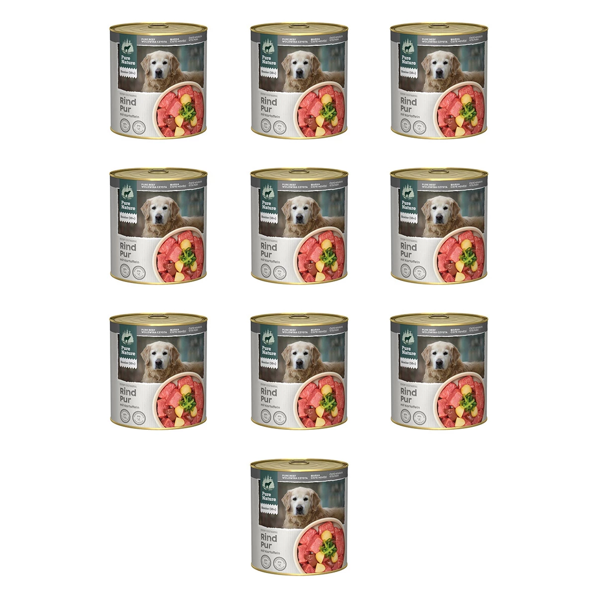 Zestaw 10x PURE NATURE DOG Senior Rind Pur - wołowina z ziemniakami i algami dla psa seniora (800g)