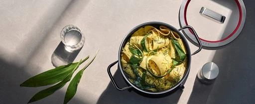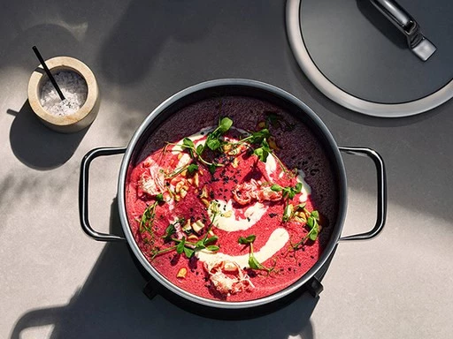 - wykonany z materiału Fusiontec (stop z 20 minerałami), odporny na porysowanie, dobrze rozprowadza ciepło,