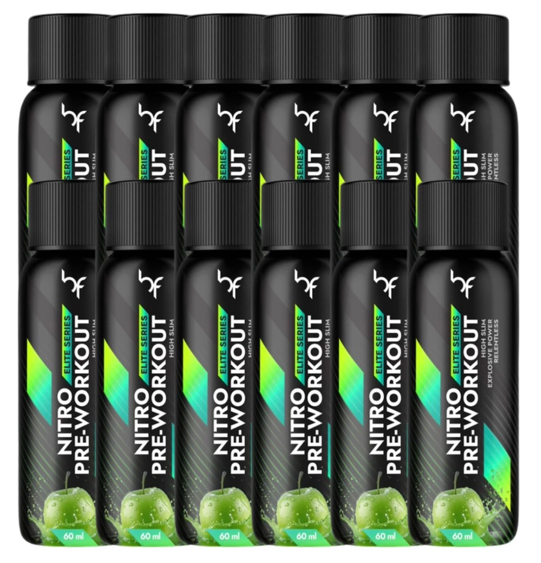 BodyFuse Nitro Shot 60 ml jabłko zestaw 12 x 60 ml to suplement diety w formie płynnych shotów, charakteryzujący się orzeźwiającym smakiem jabłka o świeżej, owocowej nucie i praktyczną formą gotową do spożycia w zestawie 12 buteleczek. Produkt wyróżnia się kompaktowym rozmiarem i intensywnym, jabłkowym aromatem, który zapewnia przyjemne doznania smakowe w małych, skoncentrowanych porcjach.