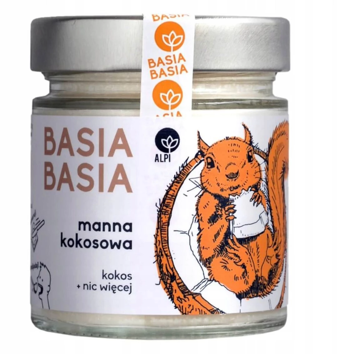 - Manna Kokosowa Basia Basia to produkt w 100% naturalny – esencjonalny, kremowy i niezwykle aromatyczny. Powstaje wyłącznie z miąższu kokosa, bez żadnych dodatków, dzięki czemu zachowuje pełnię naturalnego smaku i wartości odżywczych.