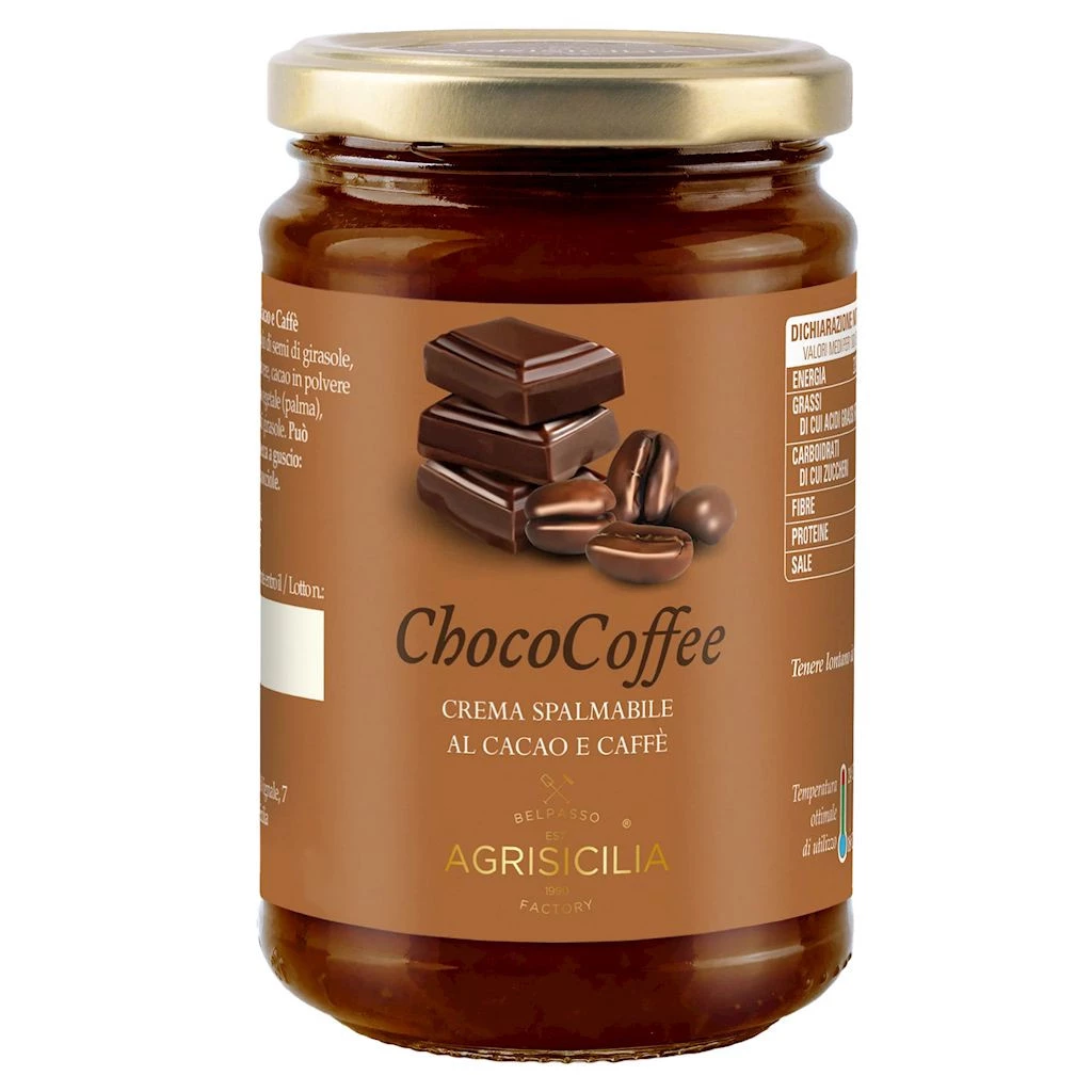 Krem do smarowania z kakao i kawą. Idealnie sprawdzi się jako dodatek do pieczywa, ciastek, naleśników czy też deserów.