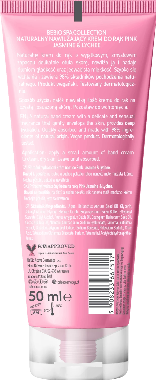beBIO Spa Collection Nawilżający krem do rąk Pink Jasmine & Lychee 50ml