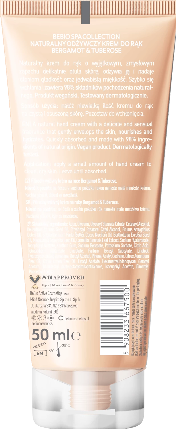 beBIO Spa Collection Odżywczy krem do rąk Bergamot & Tuberose 50ml