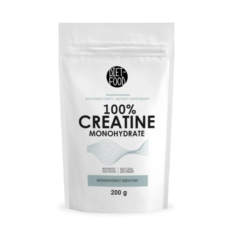 - Kreatyna Monohydrat DIET-FOOD to suplement diety zawierający 100% czystą, mikronizowaną kreatynę bez jakichkolwiek dodatków. Dzięki wysokiej mikronizacji 200 mesh charakteryzuje się doskonałą rozpuszczalnością i wysoką biodostępnością.