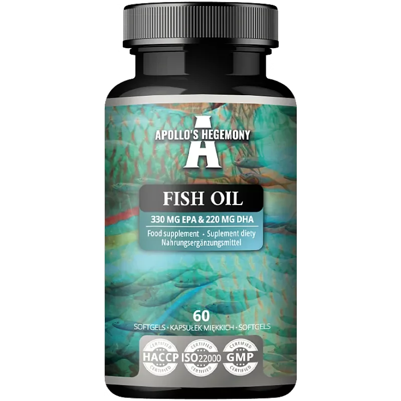 - APOLLO'S HEGEMONY Fish Oil 1000mg to wysokiej jakości suplement diety zawierający naturalny koncentrat oleju rybnego, będący bogatym źródłem niezbędnych kwasów tłuszczowych Omega-3 (EPA i DHA).