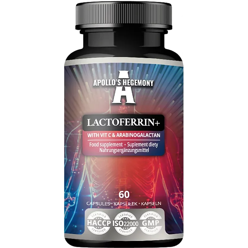 - APOLLO'S HEGEMONY Lactoferrin+ to starannie opracowany suplement diety, który łączy laktoferynę VLF-1, witaminę C oraz arabinogalaktan w synergiczną formułę wspierającą organizm na wielu poziomach.
