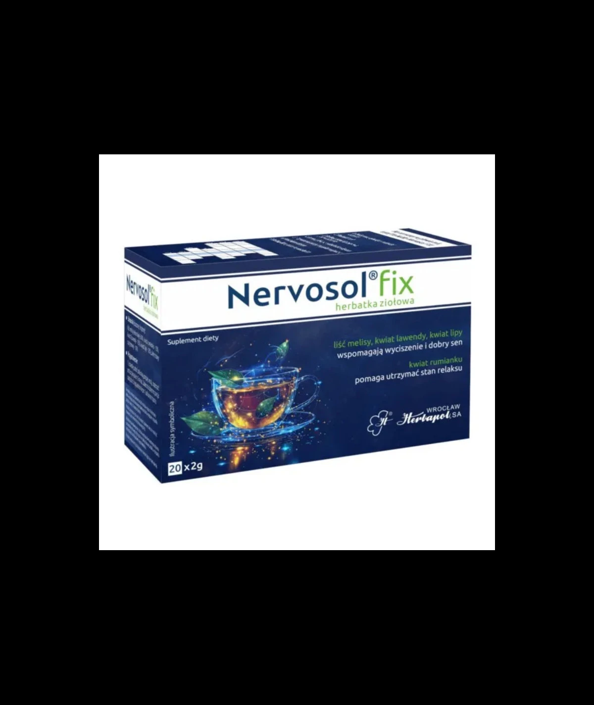 - Herbapol Wrocław Nervosol fix herbtaka ziołowa 20 saszetek skład herbatki:melisa 50%, rumianek 15%, lawenda 15%, lipa 10%, trawa cytrynowa 10%